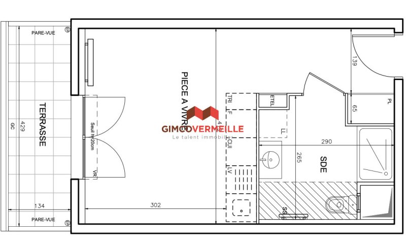Très belle pièce de vie de 20.31 m² salle d'eau de 6.17 et une terrasse de 5.75 m².