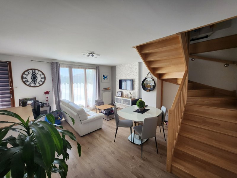 D'une superficie de 77 m² loi Carrez et 85 m² au sol, il se compose au rez-de-chaussée d'une entrée avec placard, d'une belle pièce de vie lumineuse avec sa cuisine ouverte, aménagée et équipée, donnant sur une agréable terrasse. Vous trouverez également une première chambre donnant sur un balcon et une salle d'eau avec wc.