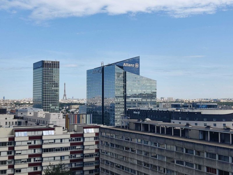Studio, lumineux, avec vue sur Paris et Tour Eiffel, comprenant entrée, séjour avec kitchenette, salle de bains avec wc.