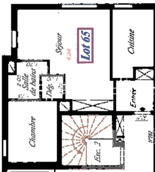 D'une entrée avec penderie , une cuisine séparée aménagée avec possibilité américaine, un double séjour possédant une double exposition avec grande penderie, une chambres, une salle de bains et un WC séparé.