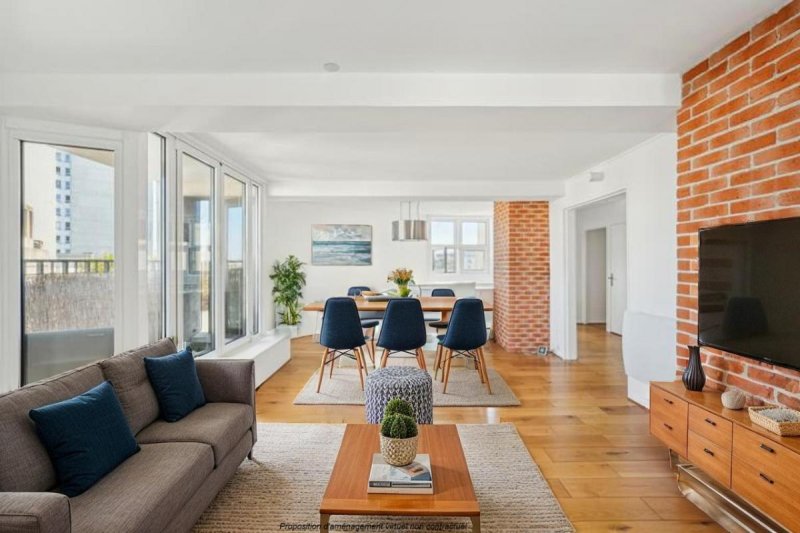 Ce spacieux appartement traversant de 101 m² séduit par sa lumière omniprésente, sa hauteur inspirante, et son atmosphère apaisante. Dès l'entrée, une généreuse pièce de vie vous accueille, prolongée par un balcon sans vis-à-vis où l'on prend de la hauteur sur le quotidien. La cuisine ouverte crée un espace convivial, idéal pour partager des moments chaleureux, tandis qu'une seconde cuisine, indépendante, offre plus d'intimité si souhaité.