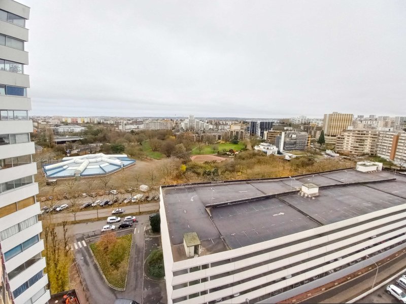 Appartement 4 pièces lumineux avec vue dégagée (12ème étage) dans Résidence de bon standing comprenant: Entrée avec rangement. Cuisine équipée (four, plaque et hotte) avec cellier attenant. Trois chambres, dont deux ouvrant sur balcon. Séjour avec accès balcons. Dégagement avec placard. Salle de bains. WC séparé. Porte palière blindée. Coffret électrique récent. En bon état général. Cave (porte métallique) au sous-sol. Proche du métro, lac, préfecture, université, école, bus, tvm, voie rapide et D86. Chauffage et eau collectifs (compris dans les charges). A visiter sans tarder.