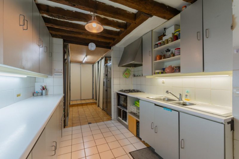 Au RDC, une entrée mène à une grande pièce de vie, complétée d'une cuisine semi ouverte et d'un bureau (possibilité de le transformer en salle d'eau). Un escalier ensoleillé mène à l'étage, où vous trouvez deux chambres , un débarras et une salle de bains avec WC. Un WC séparé peut être aménagé dans le débarras.