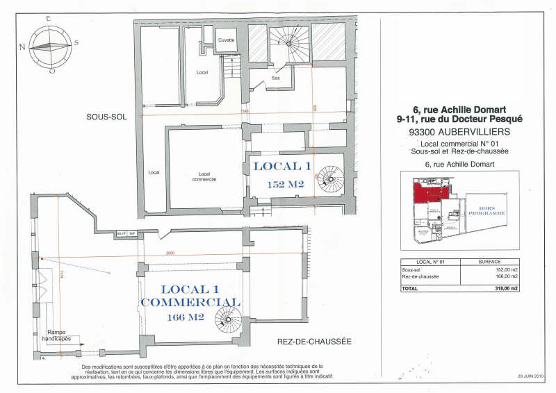 Mairie d'Aubervilliers, rue Achille Domart, proximité immédiate Métro L12 et futur Métro L15 Grand Paris, dans immeuble de caractère en brique, grand local commercial vendu libre de 292m² composé d'un niveau au rez-de-chaussée accessible depuis la rue de 158m² et un niveau au sous-sol de 134m² exploitable en surface commerciales ou en réserves.