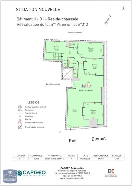 Un local commercial de 116m² donnant sur la rue Blomet : composé au rez de chaussée d'un local de 45m², 3 bureaux de 9m², coin cuisine, avec wc. Au rez de chaussée superficie de 78m².