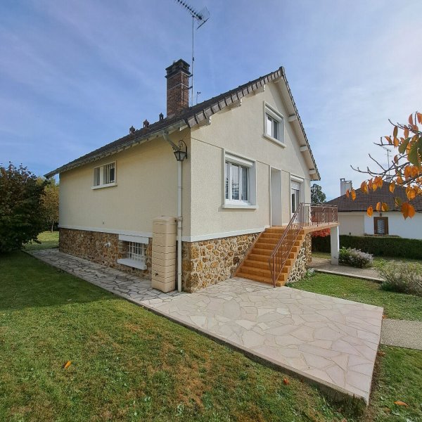 Charmante maison individuelle construite en 1964, d'environ 108 m² habitables (143 m² au sol), édifiée sur un terrain clos et arboré de 922 m², avec sous-sol total, comprenant :