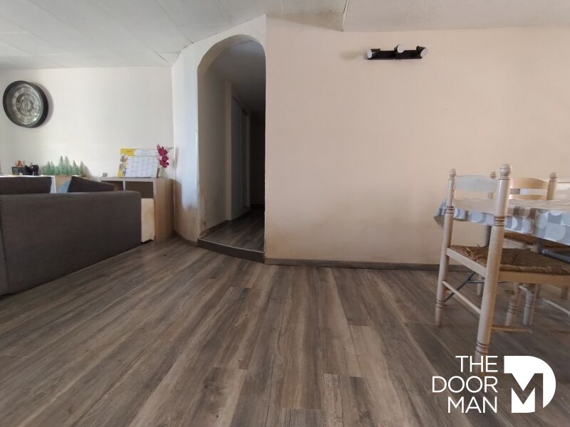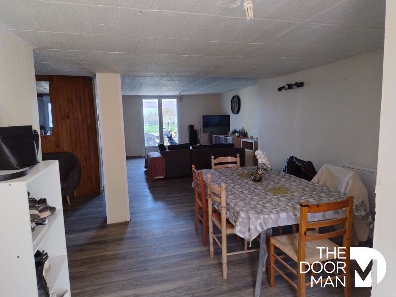Vous entrez sur une salle à manger spacieuse suivie d'un salon donnant sur une cuisine ouverte aménagée.