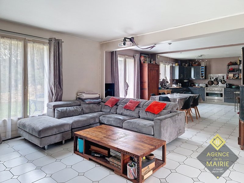 A Draveil, Champrosay, maison familiale au coeur d'un lotissement très calme. Elle se compose : Au rez de chaussée une entrée avec placard, une magnifique pièce de vie de 62 m2 env avec cuisine américaine équipée et son cellier attenant, WC et accès au garage double. A l'étage un dégagement déservant 4 belles chambres avec placard dont une suite parentale avec coin dressing et salle de bain privée, WC indépendant et salle de bain pour les enfants. Un beau jardin de 378m2 sans vis-à-vis. Gare de Ris Orangis accessible à pied ou les bus pour Juvisy sur Orge. Eléctricité refait à neuf. Classe énergie D - Les coûts sont estimés en fonction des caractéristiques de votre logement et pour une utilisation standard. Montant estimé des dépenses annuelles d'énergie de ce logement pour un usage standard est compris entre 2 300 EUR et 3 150 EUR sur les années de références 2021, 2022 et 2023. (abonnement compris)