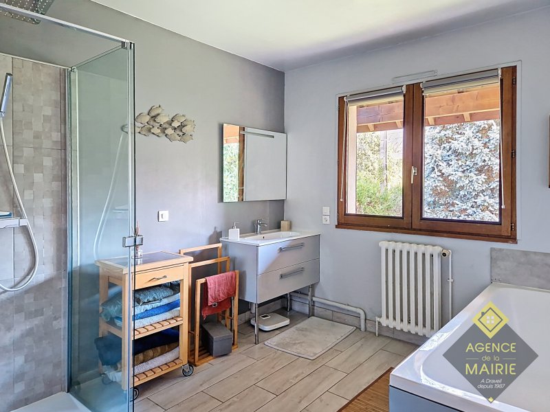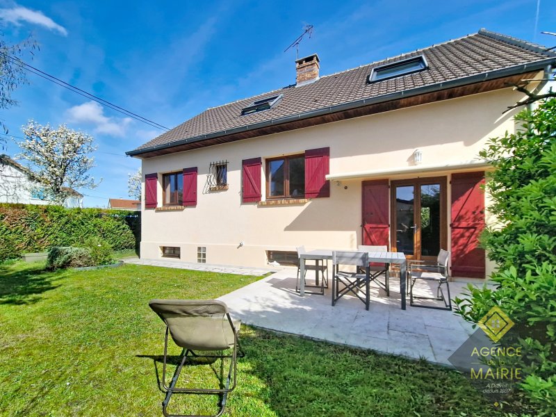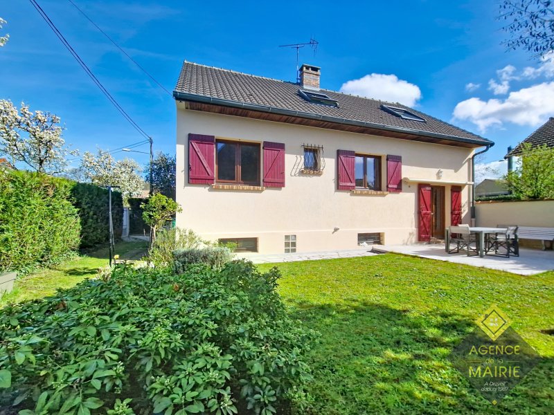 Draveil, quartier de la Plaine des Sables, calme et pavillonnaire, maison individuelle élevée sur un S/sol partiel comprenant une grande cave et buanderie de 30m2 et un garage de 30m2 également. Au rez de chaussée: une entrée donnant sur un séjour, petit salon, 1 chambre, salle d'eau et wc, une salle à manger et une cuisine équpée donnant sur terrasse. A l'étage: un palier dessert 3 belles chambres, une salle d'eau, un dressing et un toilette séparé. Côté travaux, le ravalemenent est neuf, le portail et la porte de garage également. Chauffage gaz de ville, double vitrage bois. Côté Ecole et quartier: dépendant de l'école réputée Jean Jaurès, proche du parc du Gros Buisson, environnement pavillonnaire. Cette maison a tout pour plaire