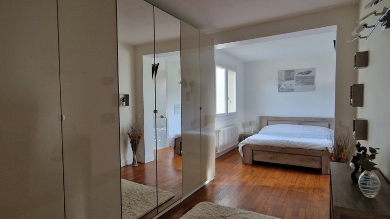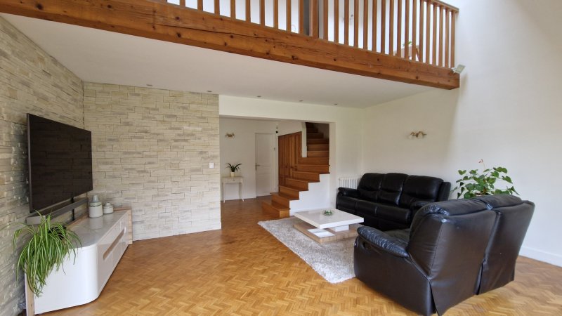 Maison familiale 165m2 habitables composée: Au rez de chaussée: d'un hall d'entrée avec placard, une grande cuisine équipée avec coin repas et annexée d'un cellier + une pièce au dessus, une salle à manger (pouvant être transformée en chambre) et un séjour double très lumineux avec plafond cathédrale, une salle d'eau, wc et buanderie/ chaufferie. A l'étage: un bureau ouvert sur le salon, 2 chambres dont une suite parentale + 20m2 avec dressing aménagé et SdB neuve avec douche, baignoire et toilettes, une deuxième salle de bains récente et wc indépendant. Au dessus, une salle de jeux et deux chambres avec nbx rangements. En dépendance, il y a un garage double et un atelier attenant. Abris de jardin. C/c gaz. Jardin devant et derrière sans vis à vis, vue sur le Parc du gros buisson. Maison entretenue et rénovée, avec beaucoup de charme. Classe énergie D - Les coûts sont estimés en fonction des caractéristiques de votre logement et pour une utilisation standard. Montant estimé des dépenses annuelles d'énergie de ce logement pour un usage standard est compris entre 3 450 EUR et 4 720 EUR sur les années de références 2021, 2022 et 2023. (abonnement compris)