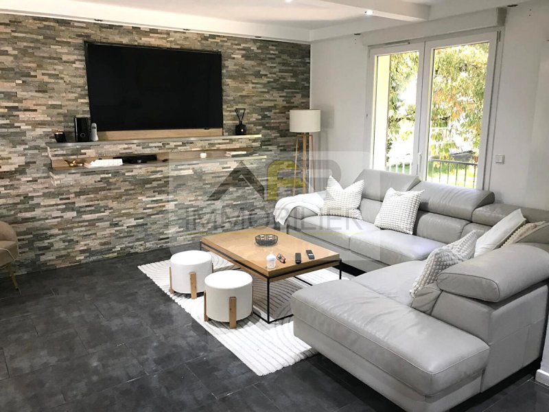 Spacieux salon / salle à manger baigné de lumière, ouvert sur une terrasse plein sud