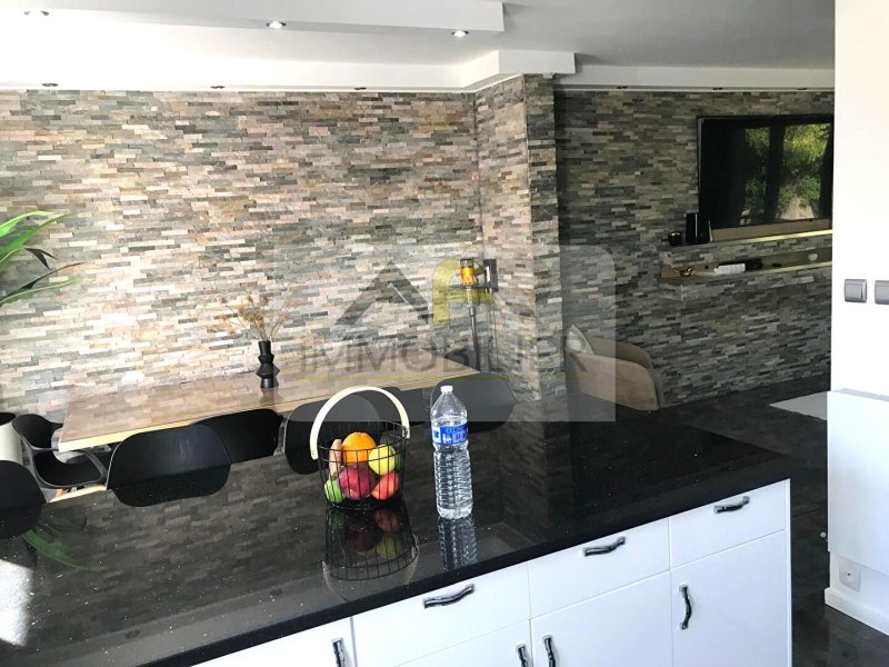 Cuisine américaine moderne entièrement équipée, idéale pour recevoir, Deux chambres confortables, Salle de bains contemporaine, Toilettes indépendantes.
