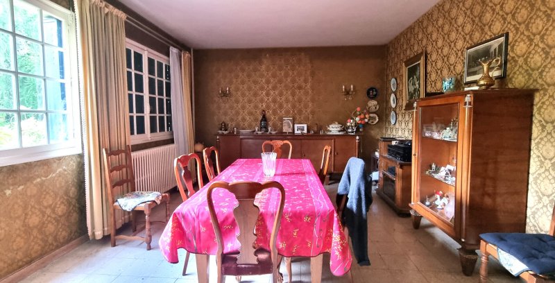- Etage: grande pièce palière avec terrasse, 4 chambres, salle de bains, wc.