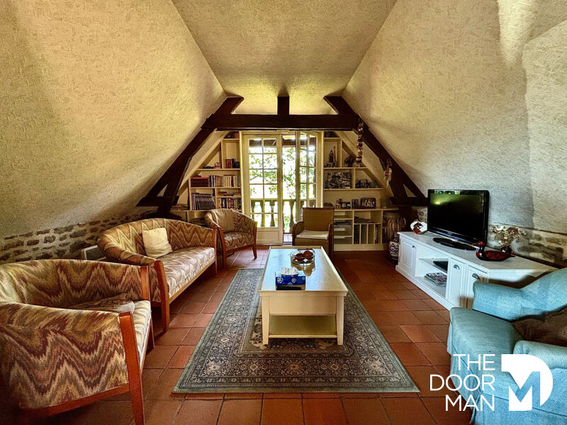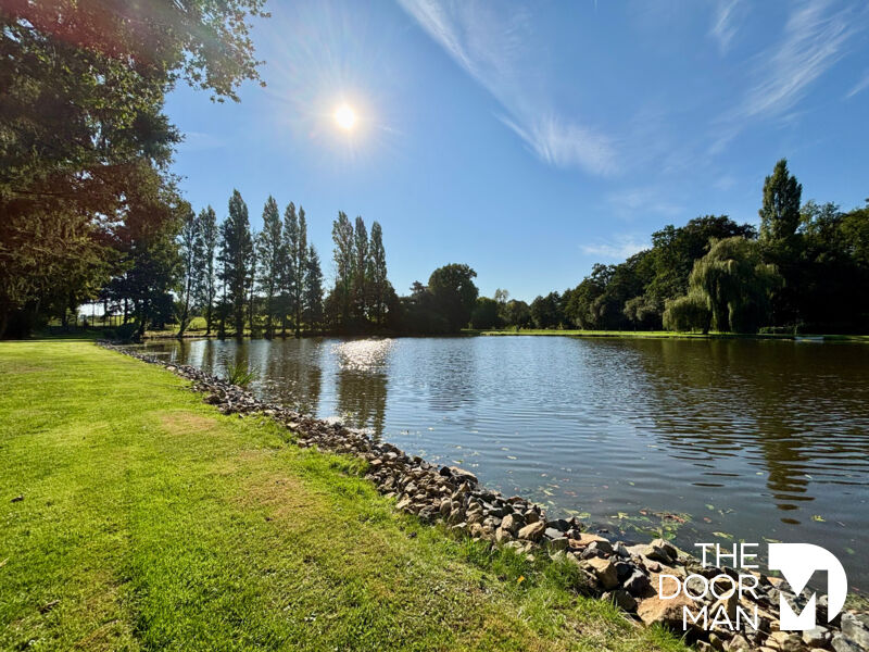 À l'extérieur, vous profiterez d'une vaste prairie traversée par un ruisseau, d'un pavillon annexe comprenant un grand garage au rez-de-chaussée et d'une pièce de vie à l'étage, d'un garage pour le rangement du bois et d'un grand étang poissonneux, bordé d'une pelouse parfaitement entretenue, idéal pour des moments de détente et de convivialité.