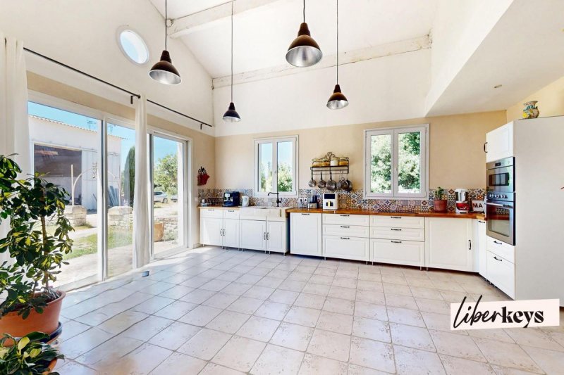 Christelle Chave vous propose, en exclusivité à Eygalières, une maison d'exception nichée au coeur d'un terrain clôturé de 3 hectares, offrant ainsi un cadre de vie rare, calme et préservé aux portes des Alpilles. Idéale pour une famille recherchant espace, confort et nature ou pour les amateurs de résidences secondaires, cette propriété de 185 m² et sa dépendance aménagée en appartement de type 2 de 60 m²séduit par ses volumes généreux et son agencement bien pensé.