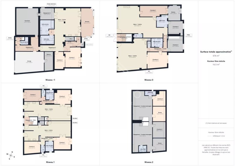 EN REZ-DE-CHAUSSÉE (98,33 m²) ET ENTRESOL (176,19 m²) :