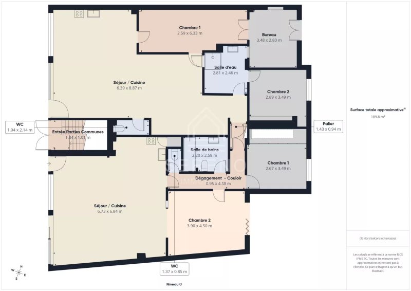 - 1 appartement traversant en duplex de 112,36 m² avec balcon et terrasse VENDU LIBRE