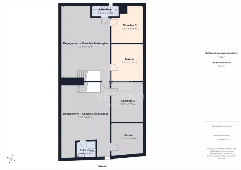 AU 1er ÉTAGE (148,03 m²) ET COMBLES (77,82 m²):
