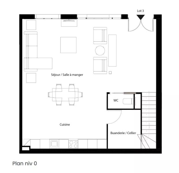 AU REZ-DE-CHAUSSEE: Une entrée sur un séjour / salle à manger avec une cuisine ouverte, une buanderie et un toilette séparé.