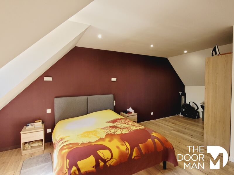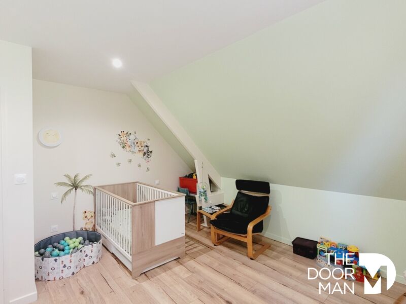 À l'étage, vous découvrirez un grand palier pouvant être aménagé selon vos besoins (bureau, salle de jeux...), desservant trois chambres, dont une particulièrement spacieuse, ainsi que des toilettes indépendantes.