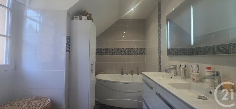 Vous serez conquis par une belle et spacieuse pièce de vie, composée d'un SEJOUR DOUBLE et d'une cuisine OUVERTE, aménagée et équipée. Vivable de PLAIN PIED, vous profiterez au RDC d'une chambre avec salle d'eau et d'un WC indépendant. A l'étage vous bénéficierez de 3 chambres avec placards, une salle de bain + douche, un wc séparé, ainsi que d' un bureau.