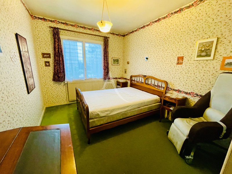 À l'étage, la maison dispose de deux chambres, d'un grenier aménageable pouvant devenir une troisième chambre, ainsi que d'un WC avec lavabo.