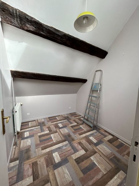 Maison comprenant au rez-de-chaussée entrée avec placard, WC sous l'escalier, séjour de 23 m² avec cheminée donnant sur une cour commune, cuisine ouverte. Au 1er étage palier, salle d'eau WC, une grande chambre de 23 m². Dans les combles un grand palier pouvant servir de bureau, deux chambres avec velux, salle d'eau avec WC. Venant compléter le lot une grange à rénover et un terrain de 1245 m².