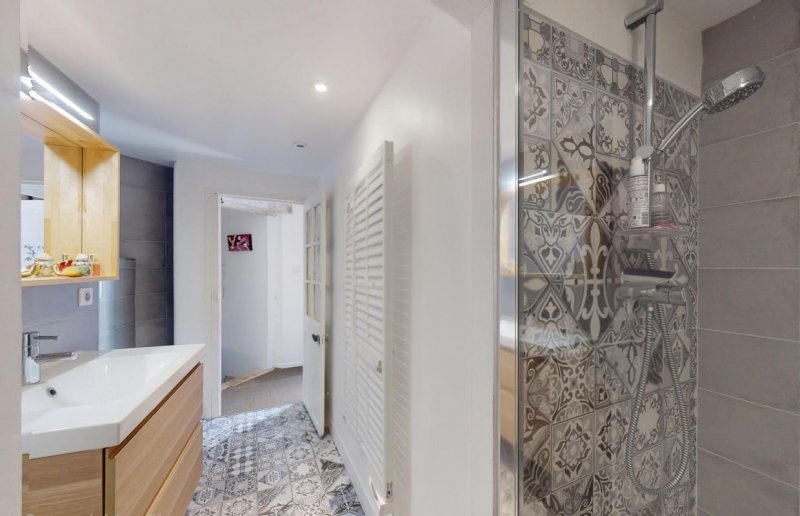Sous les halles, poussons la porte d'entrée. Elle ouvre sur un long couloir vouté en pierres qui amène à un patio intimiste et dessert une vaste pièce qui fut, jadis, une épicerie. Aujourd'hui sans fonction, vous pourrez l'aménager à votre guise.