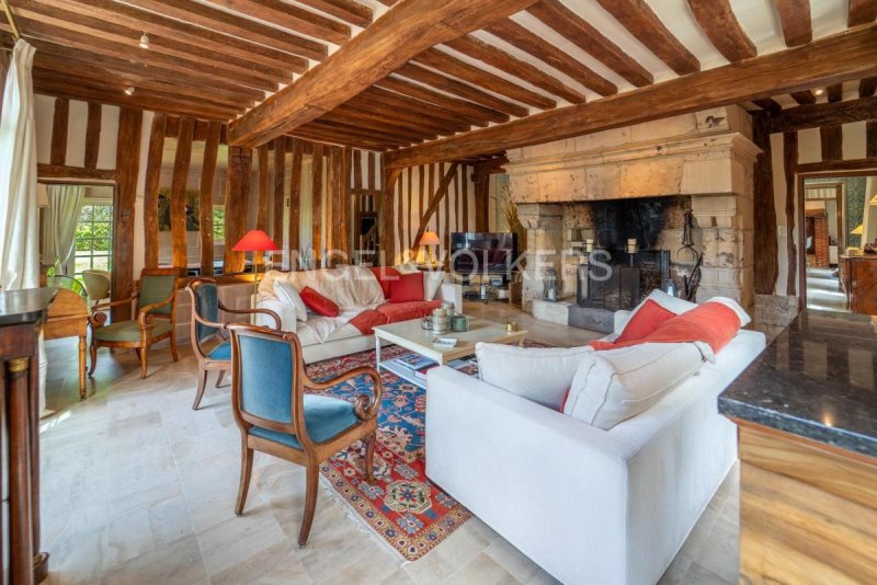 À seulement 6 km de Honfleur et 18 km de Deauville, cette élégante propriété en pierre d'environ 330m² habitables, se déploie au coeur d'un parc paysagé clos, d'une surface de près de 2 hectares, à l'abri des regards.