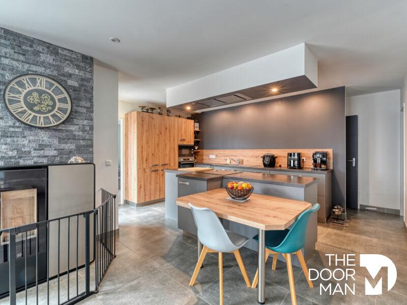 Elle est composée de 5 pièces bien agencées, avec au rez-de-chaussée, une entrée aménagée de grands placards et de WC, une cuisine ouverte sur le séjour, ainsi qu'une suite parentale avec salle d'eau et WC.