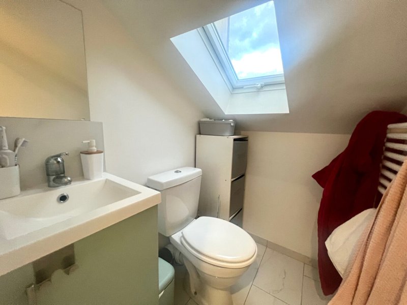 Au rez-de-chaussée, l'entrée s'ouvre sur une pièce de vie lumineuse avec une cuisine aménagée et équipée. Vous y trouverez également une chambre avec sa salle d'eau et un WC, ainsi qu'un espace extérieur.