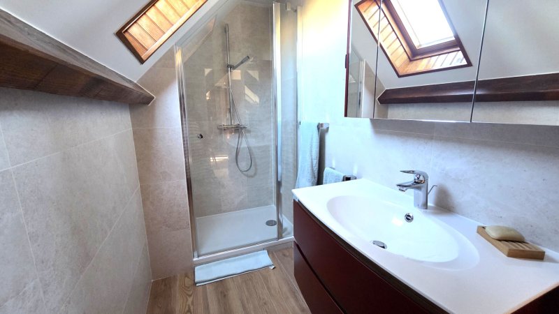 Elle se compose d'une entrée, d' une cuisine , d' un séjour double avec accès terrasse et sa cheminée, une chambre en rdc ainsi qu'une salle de bains et wc. A l'étage un palier pouvant faire office de bureau, deux chambres, un dressing, et une salle d'eau.