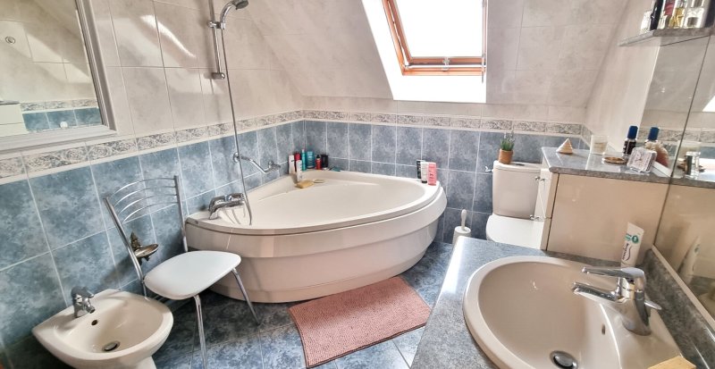 À l'étage, un grand palier dessert trois chambres, ainsi qu'une pièce de 25 m² environ pouvant être aménage en suite parentale. Une salle de bains avec wc complètent l'étage supérieur. Edifiée sue un terrain de 500 m² elle dispose d'une belle terrasse de 42 m² donnant accès à un jardin sans vis à vis. Son sous sol total avec buanderie ,cuisine et cave à vin complète le confort de cette maison.