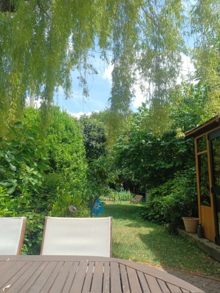 À l'extérieur, un magnifique jardin arboré et calme, sans vis-à-vis, vous attend, agrémenté d'une dépendance abritant un jacuzzi pour des moments de pure relaxation.