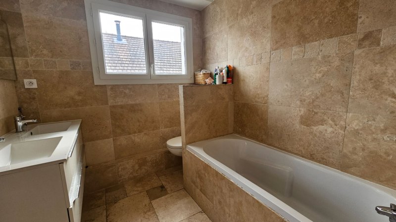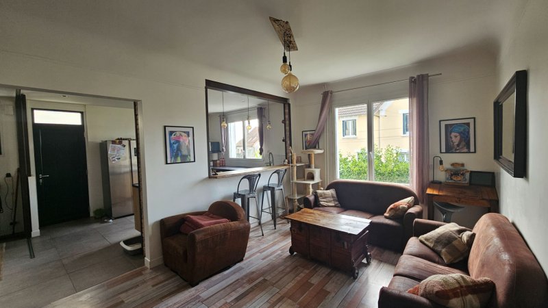 AFR IMMOBILIER vous propose à 15' du RER et à 5' du centre-ville, cette MAISON entièrement rénovée, édifiée sur un terrain d'environ 400 m² comprenant: grande pièce à vivre (cuisine, salle à manger, salon) avec ses espaces distincts, une suite parentale au rez-de-chaussée (salle d'eau et dressing), wc.