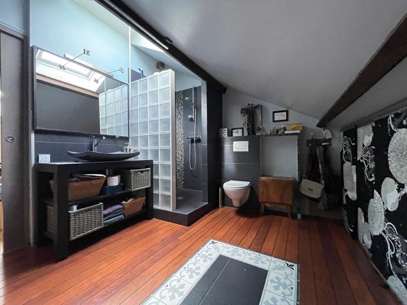 À l'étage : grande pièce palière, deux autres chambres spacieuses, une suite parentale avec sa propre salle d'eau équipée d'une douche à l'italienne et wc.