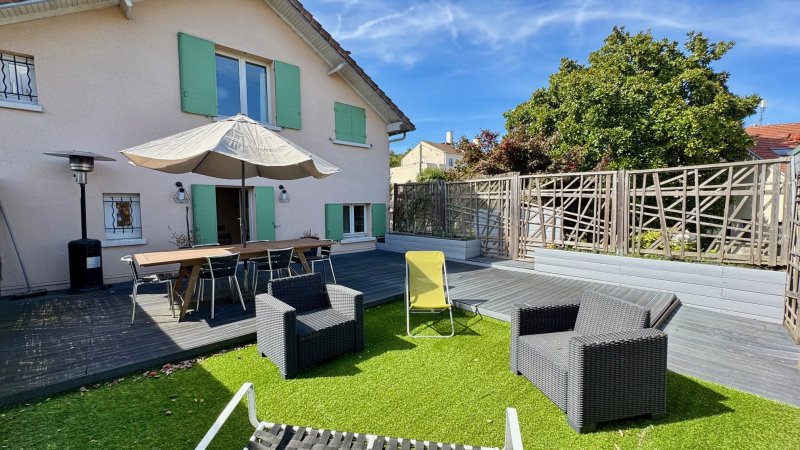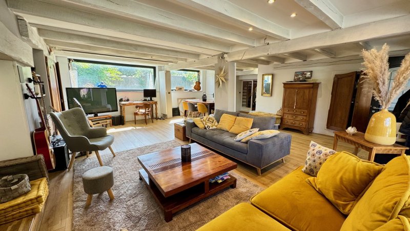 À seulement 500 mètres des commerces, des écoles et de toutes les commodités, cette maison de 200 m2 habitables (hors annexes) conjugue avec raffinement le charme de l'ancien réinventé et le confort contemporain. Le rez-de-chaussée s'ouvre sur un vaste séjour de 51 m2 baigné de lumière, sublimé par une cheminée insert, et prolongé par un accès direct au jardin. L'espace de vie se complète d'une cuisine ouverte sur une salle à manger et un boudoir, alliant convivialité et élégance. L'espace nuit se compose de quatre chambres, d'une salle de bain et d'une salle d'eau, offrant confort et intimité à toute la famille. À l'extérieur, vous serez conquis par une exceptionnelle terrasse rooftop de 60 m2, véritable écrin de convivialité avec vue panoramique sur le bois de Verrières. En complément, un studio indépendant de 25 m2 vient enrichir ce bien rare -- idéal pour une profession libérale, accueillir un proche ou générer un revenu locatif. Un bien singulier au coeur d'Igny, mariant espace, caractère et indépendance, à deux pas du bourg. ???? Une visite s'impose pour en saisir tout le potentiel !