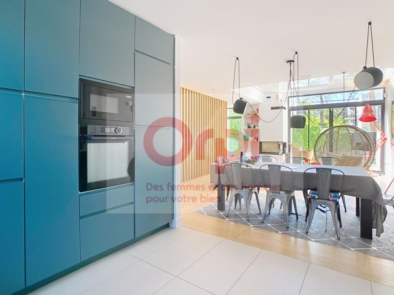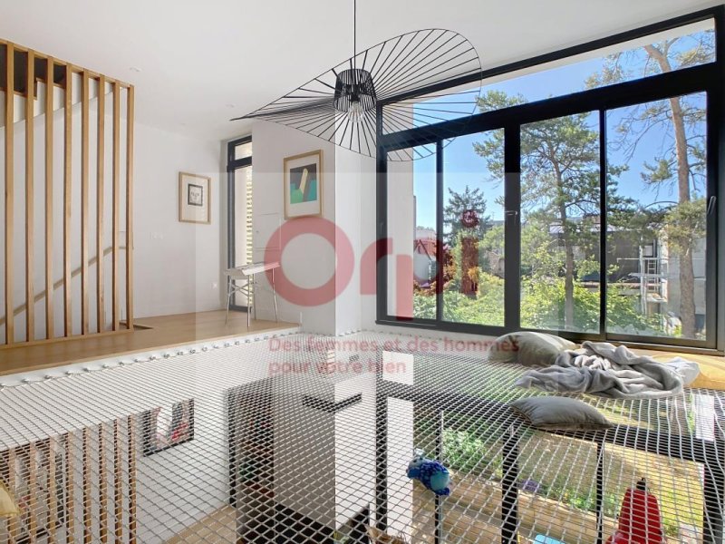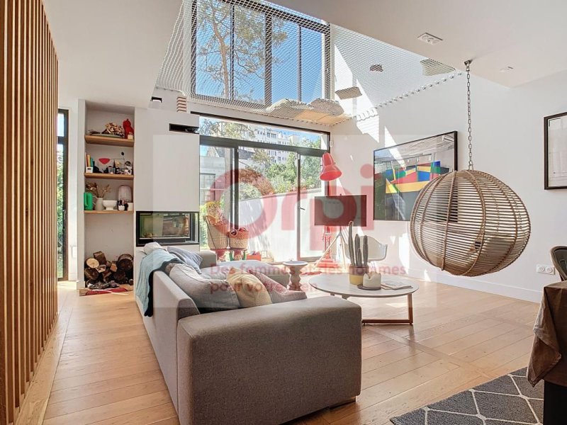 Le rez-de-chaussée propose une belle pièce à vivre baignée de lumière, pour partie en double hauteur pour le salon offrant terrasse et jardin en perspective côté sud, et l'espace cuisine et salle à manger côté nord.