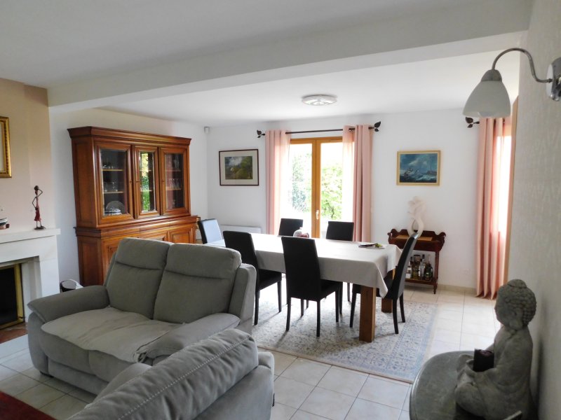 Maison construite en 2002 sur un beau terrain clos, plat et au calme. Au rez de chaussée : entrée, séjour à la double exposition de 41 m2 avec cheminée à foyer fermé, cuisine indépendante, toilettes, une chambre et une salle de douche. A l'étage, sur dalle béton, trois belles chambres avec placards, une salle de bains, toilettes. Grand garage, grenier au dessus (aménageable). Petit chalet de jardin. Possibilité de garer 3 voitures devant la maison. Chauffage électrique. Etat impeccable. Contactez nous au 01 34 85 28 21