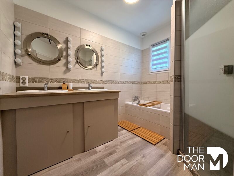 Le jardin est aménagée, paysagé et clos (2 portails). Il est très agréable, avec ces 2 terrasses et sa piscine chauffée.
