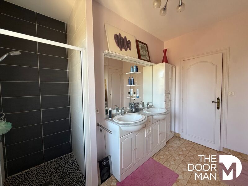 -sas d'entrée, séjour-salon de 38 m² avec sortie sur terrasse, cuisine, aménagée et équipée, cellier, dégagement, salle de bains (baignoire et douche), wc, 3 belles chambres dont 2 avec placard et points d'eaux.