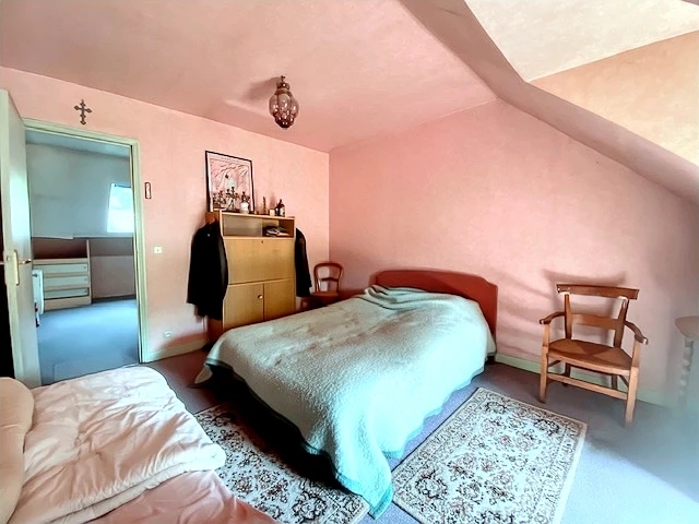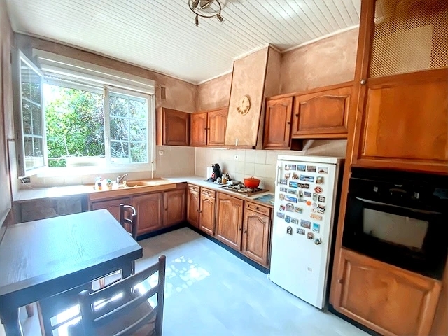 Vous découvrirez une entrée desservant une cuisine équipée/aménagée et un séjour chaleureux agrémenté dune cheminée. La maison offre 3 chambres dont une située au rez-de-chaussée avec sa salle deau attenante, un atout rare et pratique. Une seconde salle deau ( en cours) complète létage, ainsi que deux WC séparés.