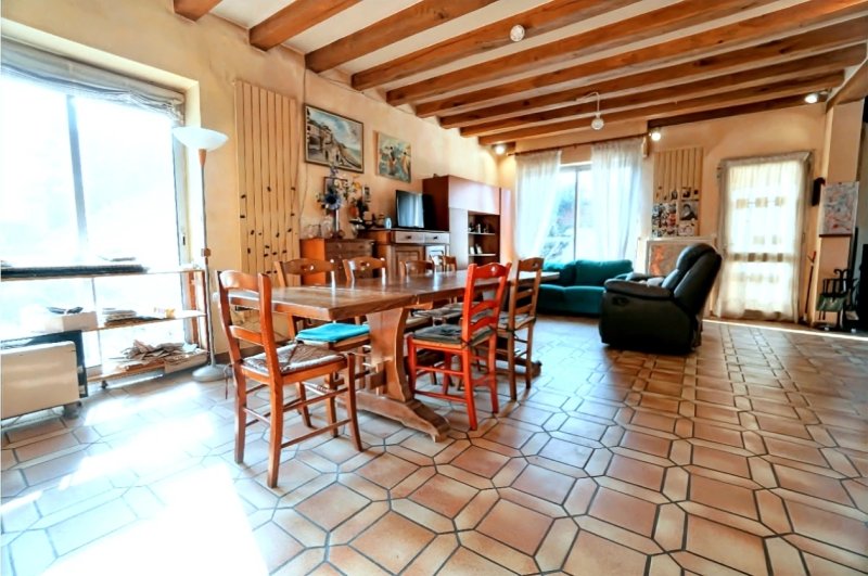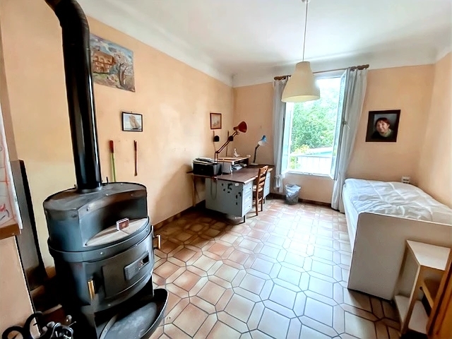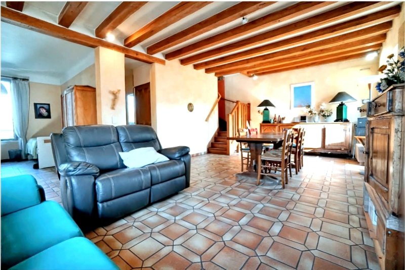 DESCRIPTIF : Entrée, cuisine équipée/aménagée, grand séjour avec poêle et accès terrasse, salon, 5 chambres, salle de bains, salle deau, 2 WC.