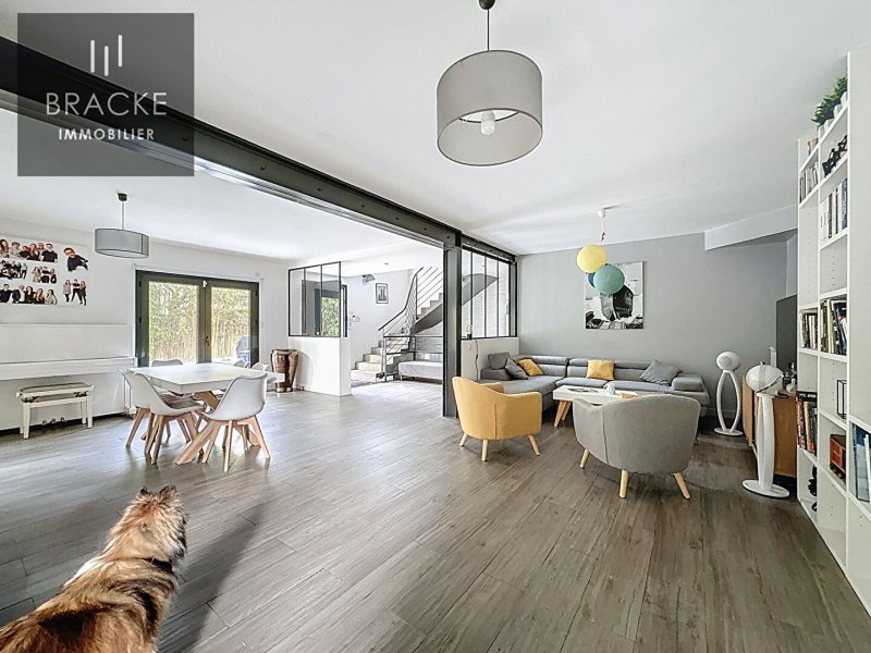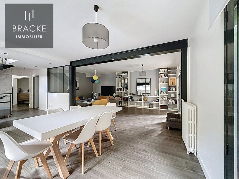 Grande maison d'architecte non mitoyenne développant 377m2 utiles et 267m2 en surface de vie avec jardin arboré et terrasse.