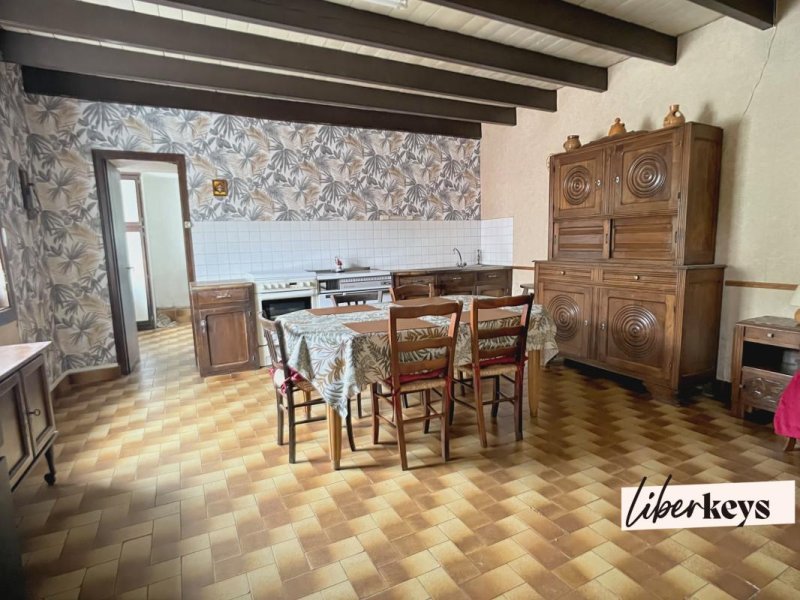 Cette ancienne maison bretonne nécessite un rafraîchissement et une remise aux normes. Elle dispose au rez de chaussée d'une entrée desservant une salle à manger et une grande cuisine, un cellier et une salle de bains avec wc. A l'étage, un palier donne sur deux chambres mansardées.