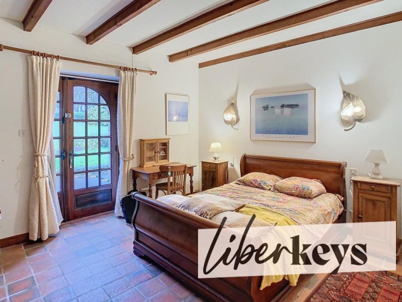 Dans la continuité, toujours au rez-de-chaussée se trouvent deux jolies chambres, l'une d'entre elles dispose d'une porte fenêtre donnant sur l'extérieur. Une belle salle de bain lumineuse. Une buanderie.