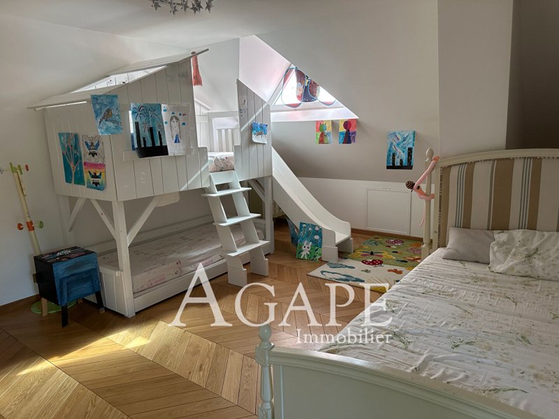 En EXCLUSIVITÉ à LA VARENNE ST HILAIRE - Dans un secteur ultra résidentiel, au calme, dans un cadre exceptionnel et un environnement bucolique, proche des Bords de Marne, des commerces et des transports, cette demeure de 346m² habitable, vous séduira par ses volumes et ses prestations haut de gamme. Elle est édifiée sur un terrain de 1555m² arboré, sans vis-à-vis. Au rez-de-chaussée, elle comprend un triple séjour - salon - salle à manger d'environ 100m² avec cheminée, ainsi qu'une cuisine équipée avec îlot central d'environ 30m² ouvrant sur une terrasse et la piscine chauffée côté jardin. Un espace de détente de 23m², une suite parentale avec dressing, salle de bains et WC ainsi qu'un bureau viennent compléter le rez-de-chaussée. Au premier étage, elle offre quatre grandes chambres, une salle d'eau avec WC et une salle de bains avec WC. Le sous-sol total est distribué en salle de sport, salle de jeux, sauna, salle de projection, chaufferie, buanderie et une grande pièce de rangement.