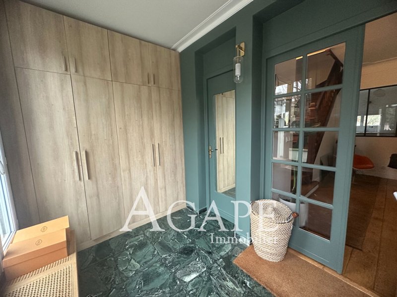 LA VARENNE ST HILAIRE, dans un secteur très recherché, au calme, proche centre-ville, écoles, centres sportifs, commerces-marché et à deux pas de la station RER LA VARENNE, sur un terrain de 424m² arboré, cette maison non-mitoyenne impeccable avec beaucoup de charme, est élevée sur un sous-sol total composé d'une chaufferie, d'une buanderie et de grands espaces de rangement. Elle comprend au RC, une entrée-vestibule avec WC, une cuisine ouverte équipée, un séjour-salle à manger ouvrant de plain-pied sur une terrasse carrelée, sans vis à vis côté jardin. Le 1er étage offre 3 chambres et une belle salle d'eau avec WC. Les combles sont aménagés en une chambre mansardée avec salle d'eau et rangements en sous-pente. Au fond du jardin se trouve une dépendance composée d'un séjour avec cuisine US, salle d'eau avec WC. Une grande salle de sport totalement indépendante complète ce bien. Affaire rare à visiter au plus vite.