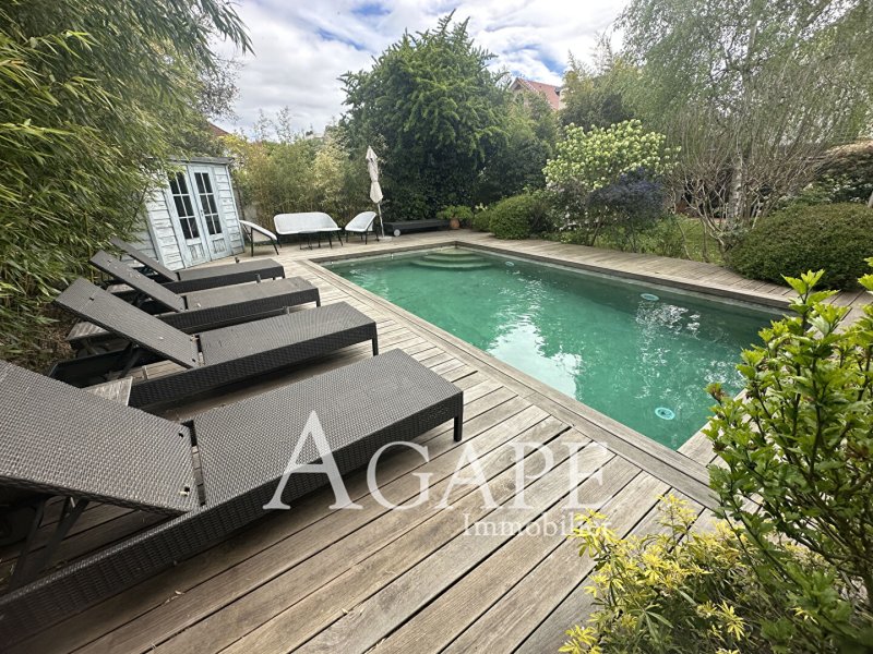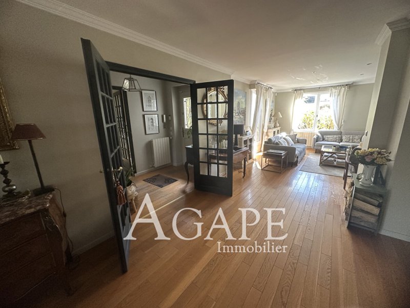 LA VARENNE ST-HILAIRE Secteur LES MURIERS, proche des écoles et des commerces, au calme, sur un terrain arboré de 561m², est édifiée cette maison décorée avec goût dans une atmosphère chaleureuse, offrant au RC, une entrée desservant un séjour-salle à manger de 64m² avec cheminée, une cuisine équipée donnant sur une verrière avec accès sur terrasse dans la verdure et sans vis à vis, une grande chambre, un dressing, un bureau, un petit salon et WC indépendants. Le 1er étage se compose de deux chambres dont une en duplex avec bureau et coin nuit, une salle de bains, une salle d'eau et WC indépendants. Les combles sont aménagés en une grande chambre avec bureau, rangements et salle d'eau. Le tout est élevé sur un sous-sol partiel avec buanderie-chaufferie et une grande pièce de stockage. Un garage au RC permet de rentrer une voiture, et un emplacement parking à l'extérieur complète ce bien. En fond de parcelle, le jardin est agrémenté d'une piscine extérieure chauffée, sans vis à vis et dans la verdure offrant un moment de détente et permettant de profiter au mieux des beaux jours.