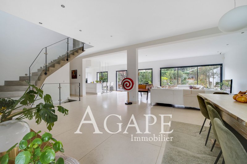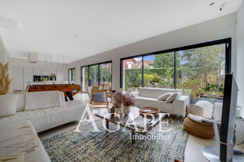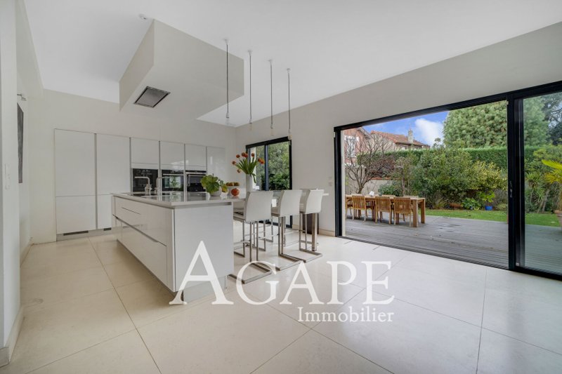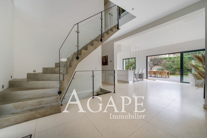 LA VARENNE ST-HILAIRE , dans un secteur calme et résidentiel, dans un environnement bucolique, cette demeure de prestige de 2015 avec des prestations haut de gamme, d'une surface habitable de 222m² et 378 m² utile, est édifiée sur un terrain arboré de 666m². Le RC qui dispose de belles hauteurs sous plafond, se compose d'une réception baignée de lumière, de 95m² avec cuisine US équipée, et de grandes baies vitrées ouvrant de plain-pied sur une spacieuse terrasse de 70m² environ, entourée de verdure, un bureau. Au 1er étage, le palier dessert cinq chambres dont une suite parentale (grande chambre, salle d'eau , WC et dressings), une salle d'eau et une salle de bains, WC, indépendants.